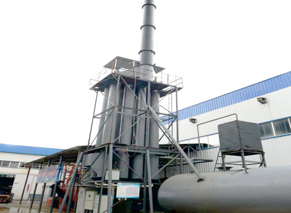 煙氣凈化工藝流程:鍋爐排出的煙氣首先通過(guò)沖擊式慣性除塵器去除大粒徑顆粒物,然后通過(guò)水膜旋風(fēng)靜電除塵器去除小粒徑顆粒物和大部分二氧化硫,最后通過(guò)湍球塔吸收氮氧化物和二氧化硫。