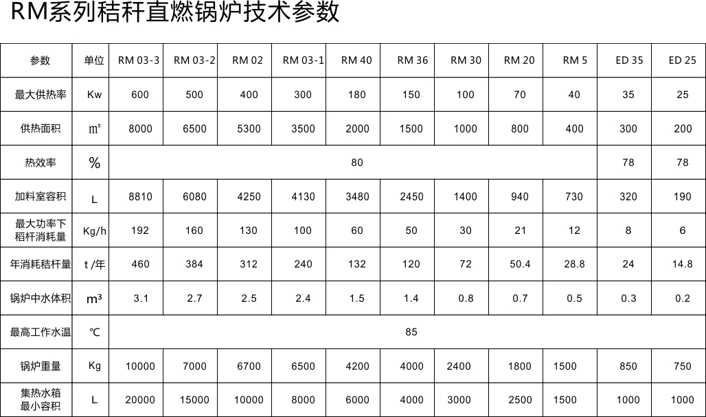RM型秸稈直燃高效鍋爐供熱系統(tǒng)所產(chǎn)生的85℃熱水在開(kāi)放式供暖系統(tǒng)或通過(guò)熱交換器的封閉式供暖系統(tǒng)狀態(tài)下運(yùn)行。